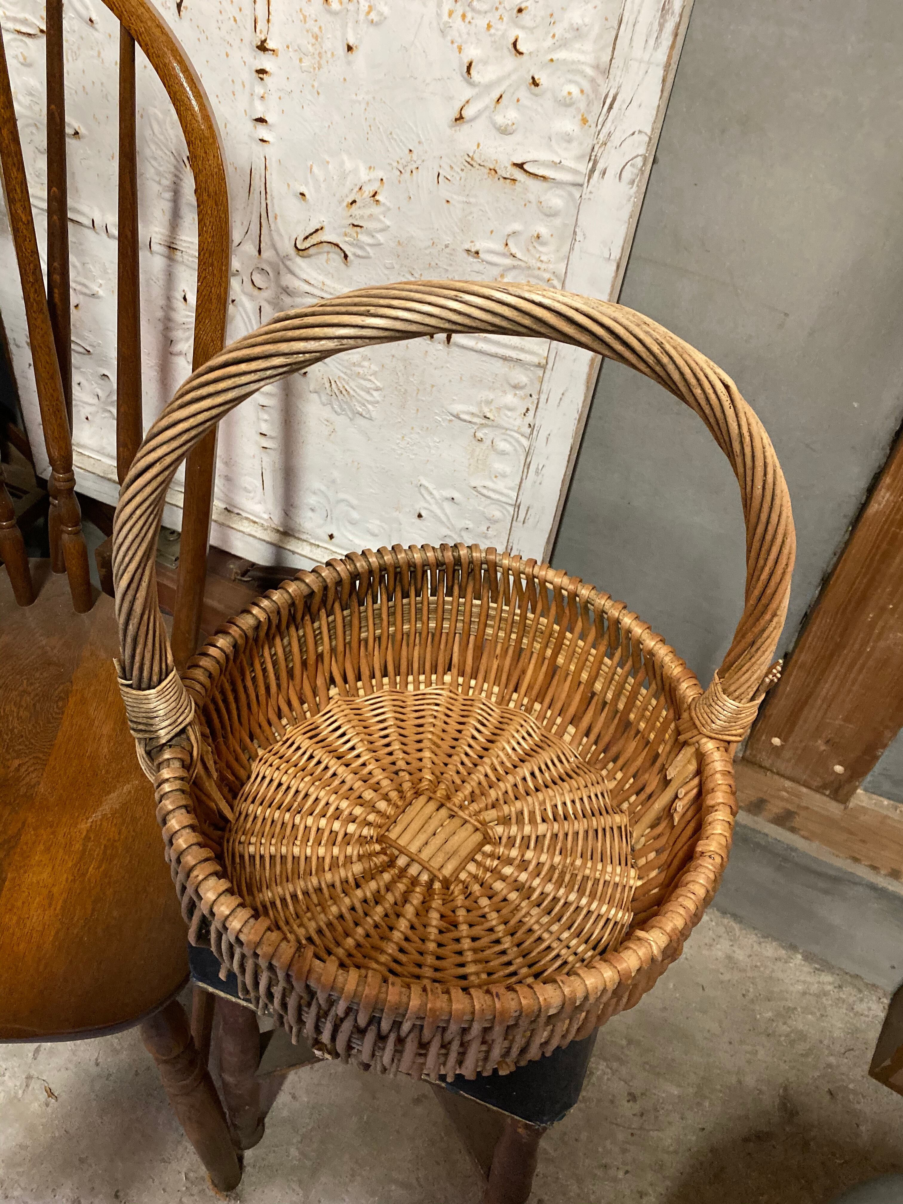 丸いバスケット 大きめ 収納 籐 インテリア カゴ籠 古道具