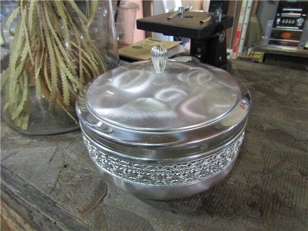 レトロ 洋銀シルバー ガラス 小物入れです♪。