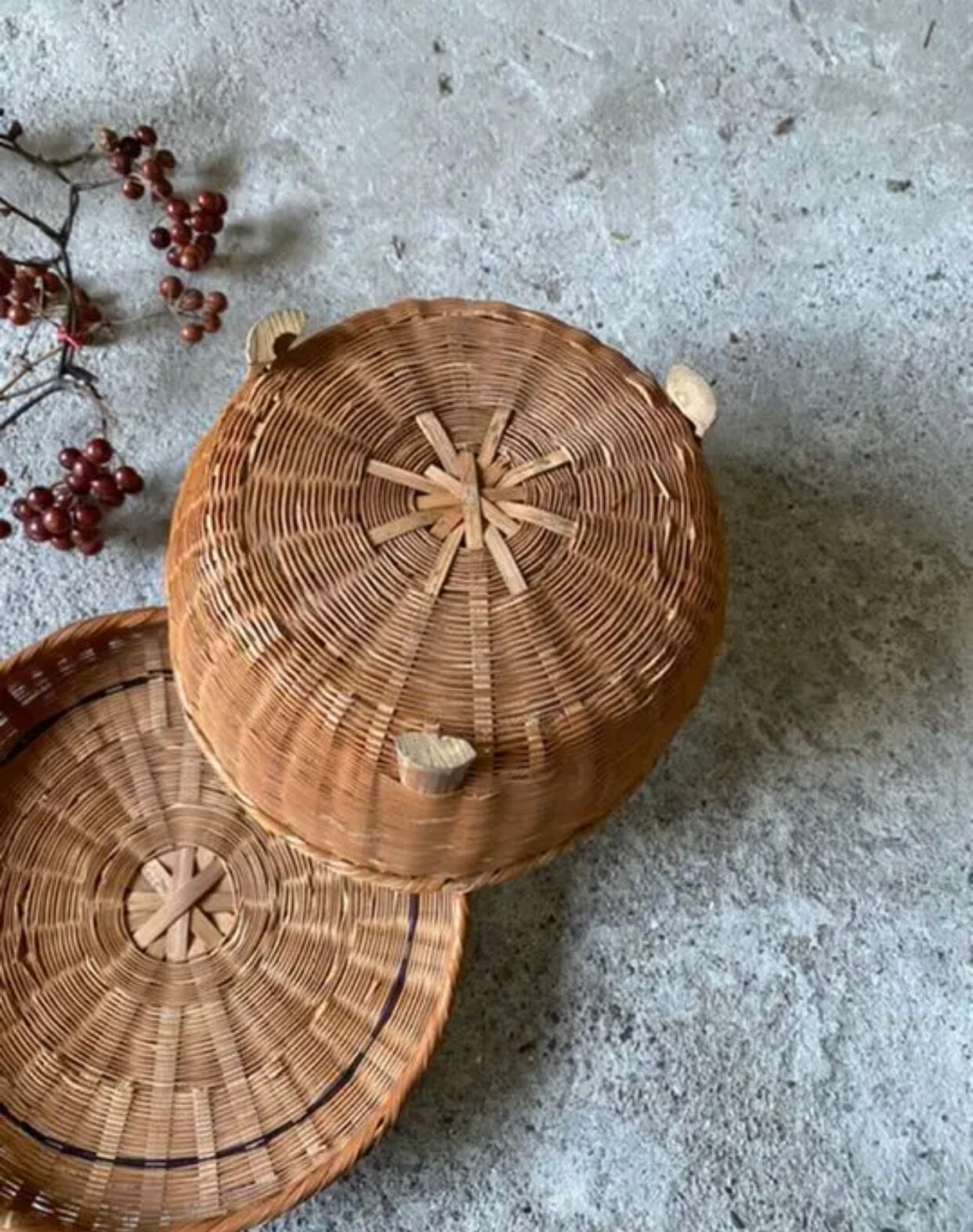 古道具 蓋付きバスケット キッチン 収納